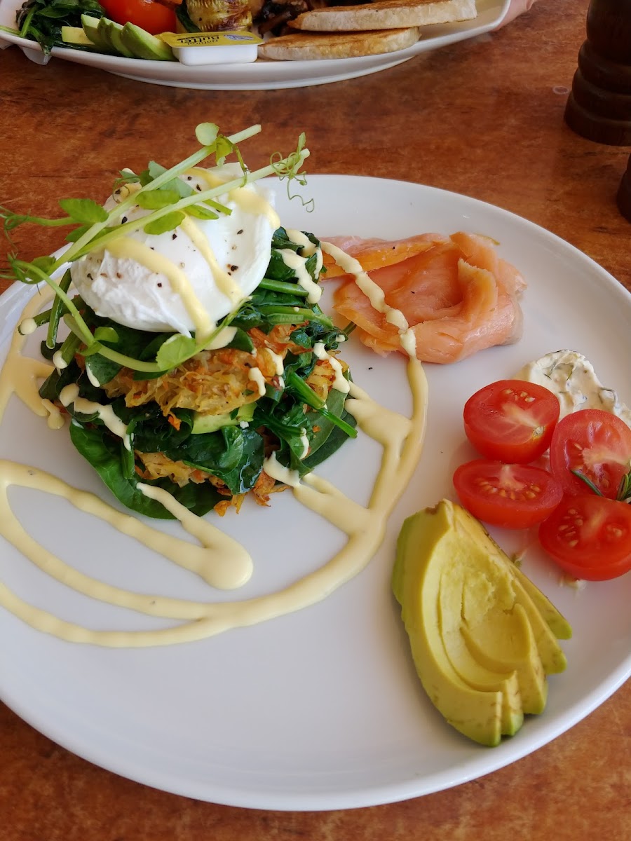 The menu balances well-known breakfast classics with a few standout dishes like the chilli prawn omelette and avocado rosti topped with salmon that catch local attention. There’s also a good range for those wanting lighter or more varied options, from poke bowls to vegetarian breakfast plates, and some comfort-food highlights like biscoff pancakes or a warming winter porridge.